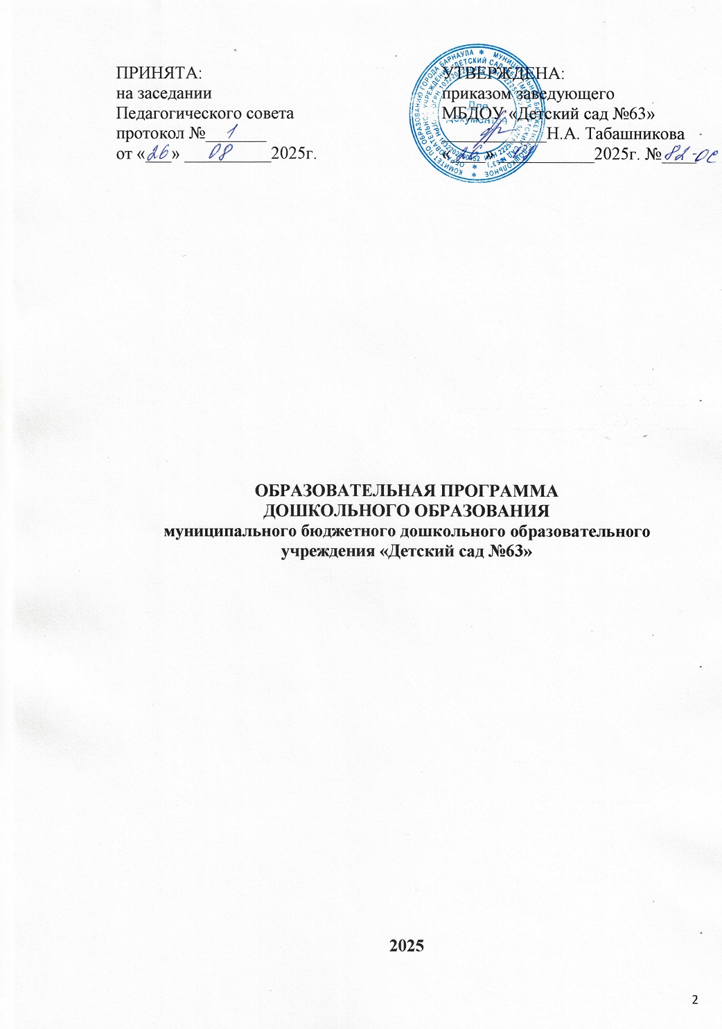 Обязательная часть Образовательной программы МБДОУ "Детский сад №63" соотвествует ФОП ДО, утвержденной приказом Министерства просвещения Российской Федерации от 25.11.2022 №1028 "Об утверждении федеральной образовательной программы дошкольного образования" (зарег. 28.12.2022 №71847) http://publication.pravo.gov.ru/Document/View/0001202212280044?index=1