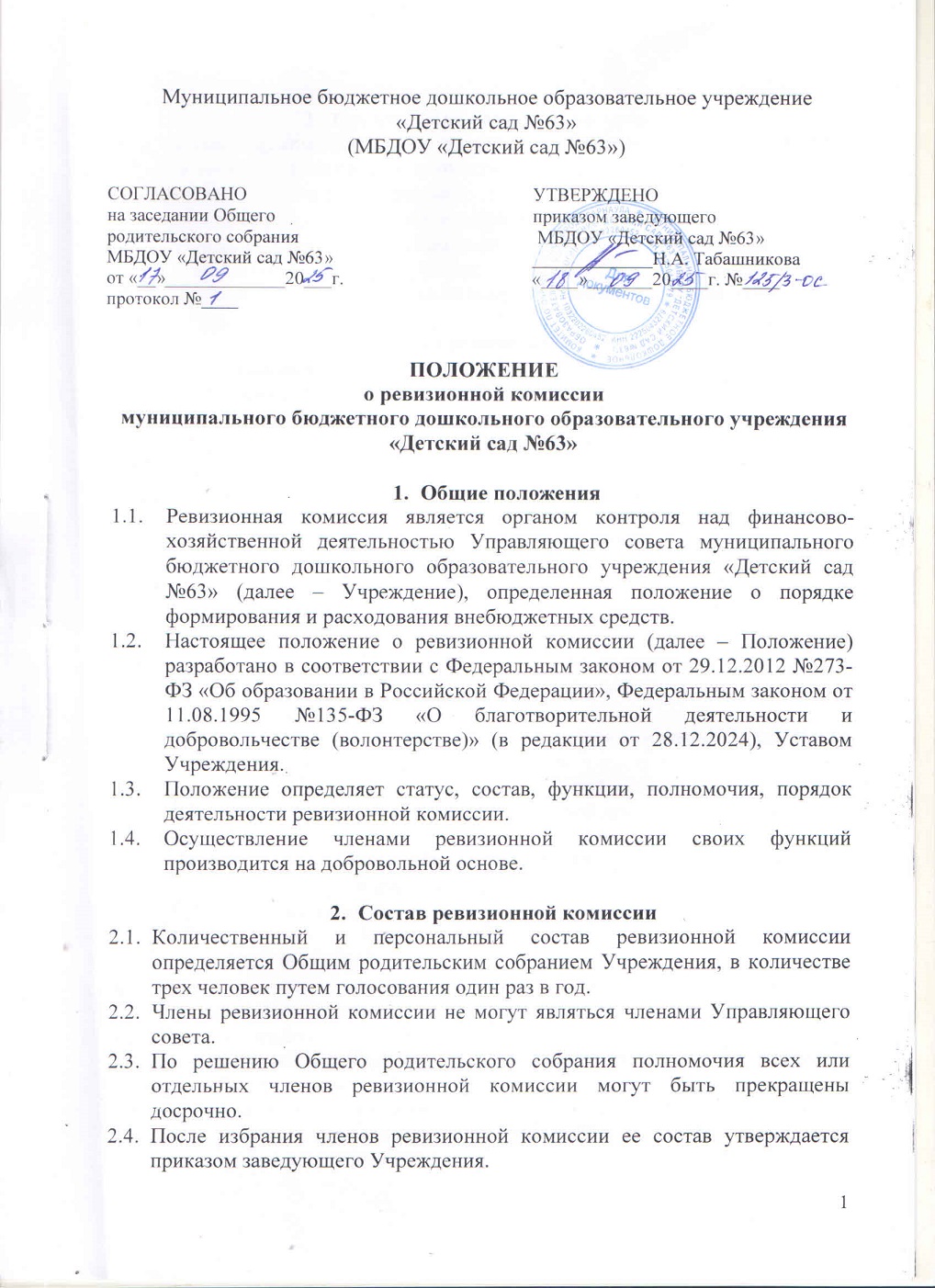 Положение о ревизионной комиссии МБДОУ "Детский сад №63"