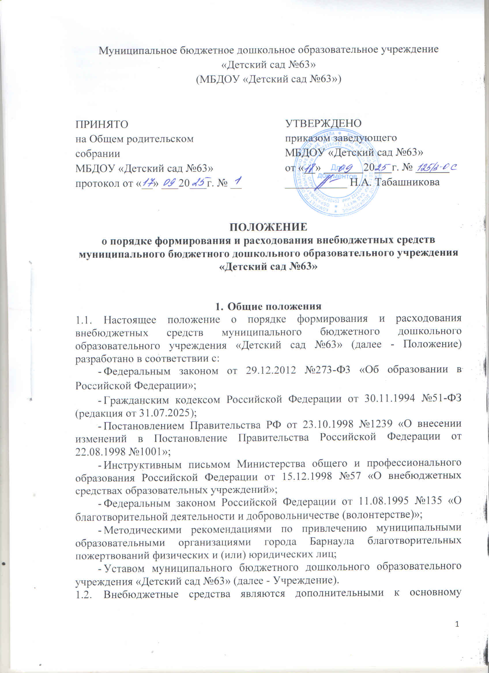 Положение о порядке формирования и расходования внебюджетных средств МБДОУ "Детский сад №63"